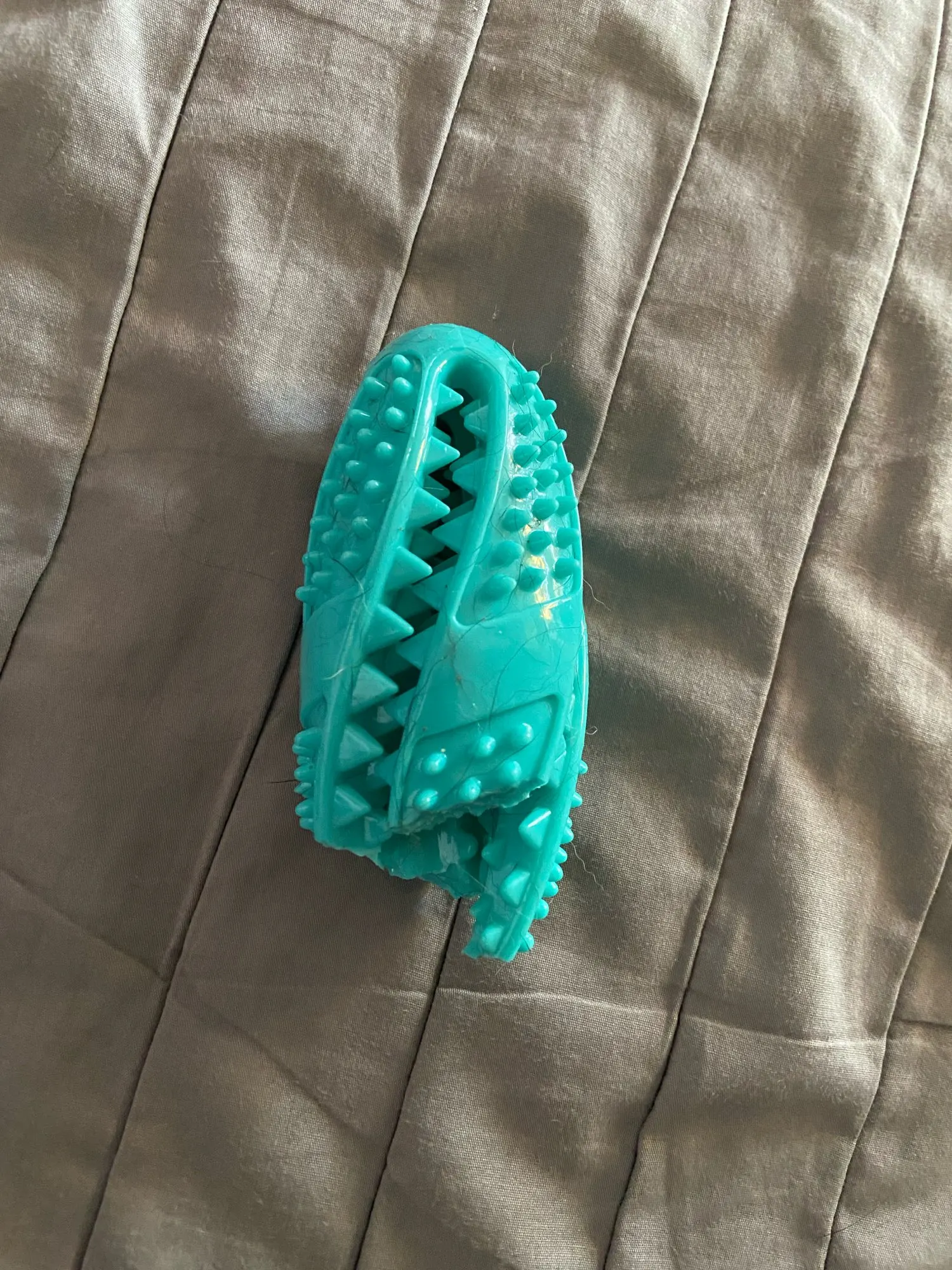 Non. La balle est conçue pour être doux pour les dents et les gencives, même lors d’une mastication intensive. Sa texture en caoutchouc naturel absorbe les pressions et limite les risques de fissures dentaires, contrairement à certains jouets trop durs ou mal conçus.